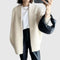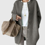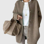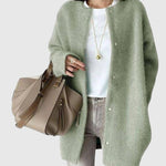 Diszkrét elegancia minden napra. Juli egy puha kötött kardigán nyak nélkül, gombos elülső záródással és egyenes, hosszított sziluettel, amely vizuálisan megnyújtja és kiemeli a farmereket és az elegáns nadrágokat.