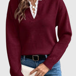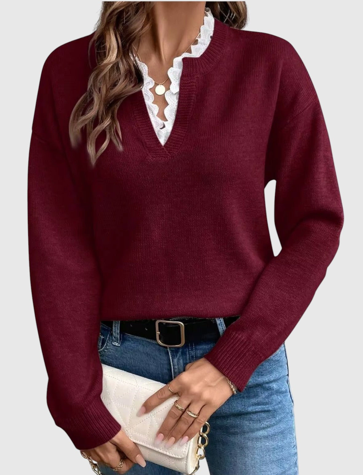Karolina – Prémium pulóver V-nyakú csipkével