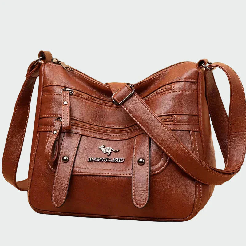 Praktikus crossbody táska meleg barna árnyalatban, puha textúrával és funkcionális designnal. Több külső cipzáras zsebbel és fedéllel rendelkezik, amelyek kényelmet biztosítanak a rendszerezéshez és a biztonságos tároláshoz. A állítható vállpánt könnyű és kényelmes viselést biztosít, míg az elegáns dizájn tökéletes választás a mindennapi informális használatra.