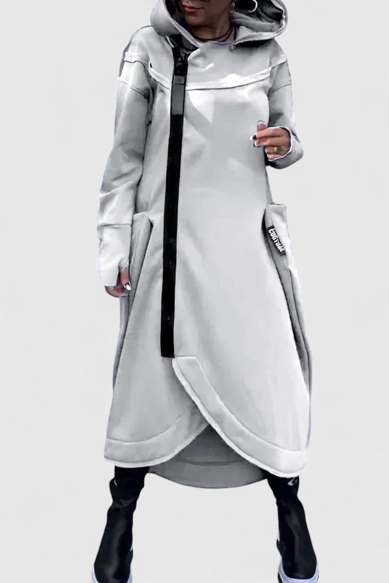 MARIE - Hosszú kabát kapucnival és cipzárral