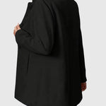 Kényelmes szabás: A dzseki elegáns drapériát kínál, és természetesen eltakarja a hasat.