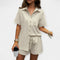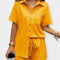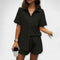 Ez a két részes szett a mindennapi kényelmet és az örök stílust ötvözi. Az ing, amely galléros és gombos, elegáns megjelenést kölcsönöz, míg a húzózsinóros elasztikus rövidnadrág rugalmasságot és szabad szabást kínál – ideális a szezon forró napjaira.