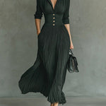 Elvira | Hosszú, pliszírozott ruha, hajtókával és magas derékkal