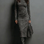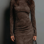 A strukturált magas nyak és a hosszú ujjú kivitel megkülönböztető és meleg érzetet ad, míg a midi hossz a nőiességet hangsúlyozza, kifinomult és sokoldalú légkörrel.