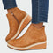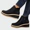Női **bőrcipők platformmal** fekete színben, amelyek ötvözik az eleganciát és a kényelmet. Minimalista dizájnja **oldalsó cipzárral** könnyű felhúzást biztosít, míg a **stabil platform** magasságot ad anélkül, hogy fárasztana. Ideálisak mindennapi és esti alkalmakra, modern városi stílusban.
