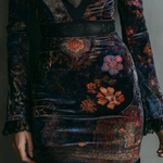 Grazia - Mini Slim-fit Velúr Ruha Virágmintával és Csipkével