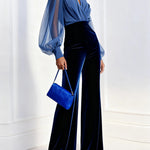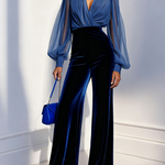 Zaira - Hosszú bársonynadrágos overál V-nyakkal és hosszú kék hálós ujjal