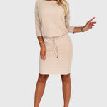 Casual Ruha Kerek Nyakkal és Derék Kötéssel
