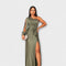 • Kifinomult dekoltázs és finom anyag struktúra – Mélységet és luxus megjelenést kölcsönöz a ruhának