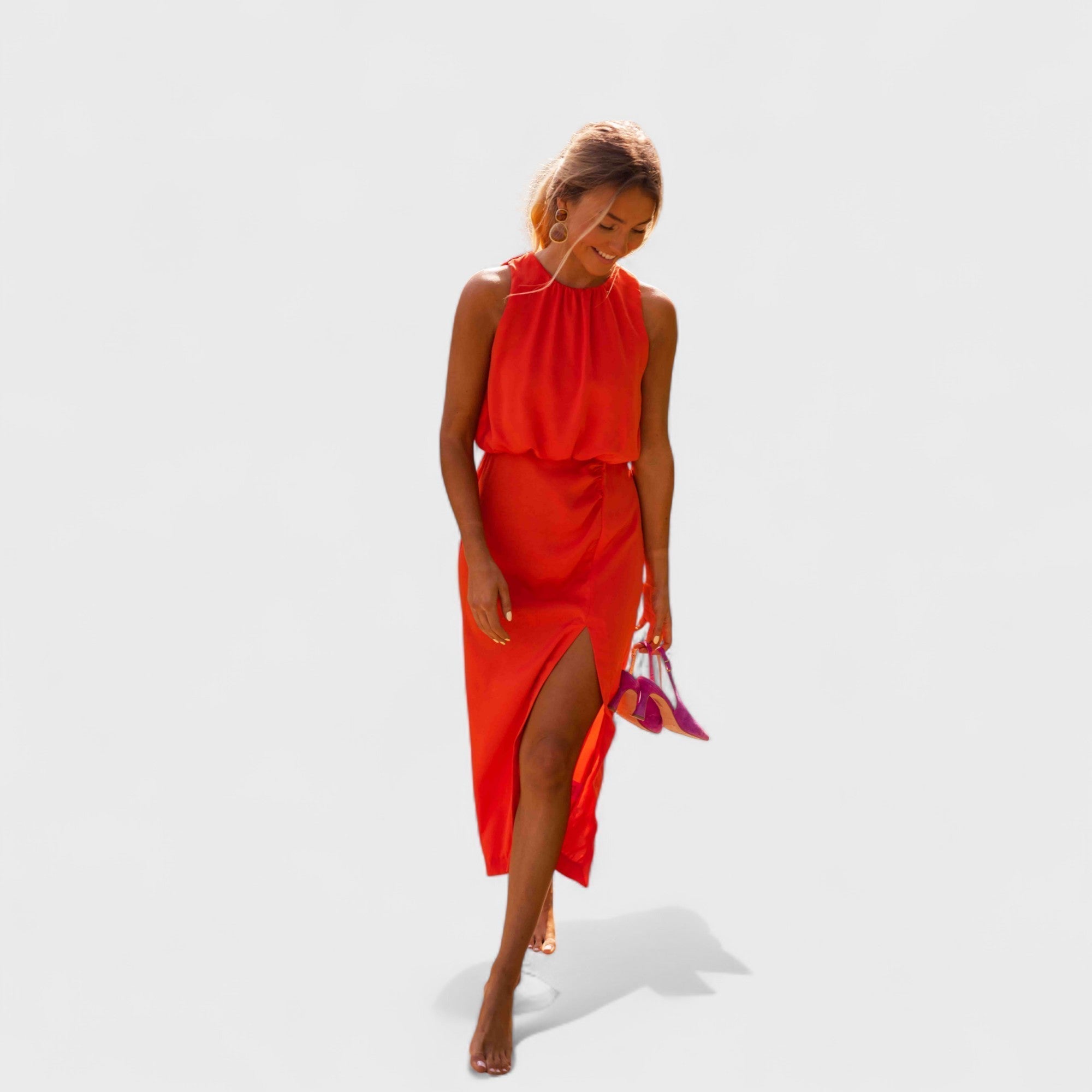 A Libuše ruha nőies sziluettet kombinál tiszta vonalakkal, hogy elkísérjen a nappali találkozóktól kezdve az esti kimenetekig. A könnyű, lágy anyag, diszkrét részletekkel a vállakon, olyan outfitté varázsol, amelyben magabiztosan és stílusosan érezheted magad.