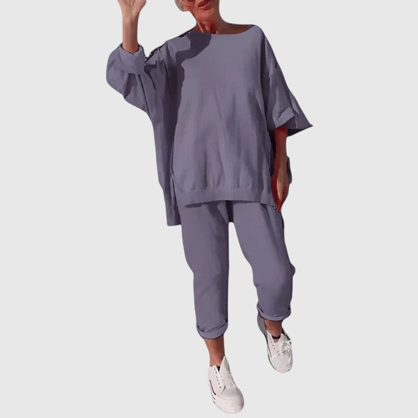A ruházat puha, könnyű és lélegző anyagból készült, amely kellemes a bőrnek és szabadságot biztosít a mozgásban. A friss és modern megjelenésének köszönhetően nemcsak pihenésre, hanem informális sétákra is alkalmas.