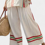 Mediterrán Laika szett bambusz vászonból elegáns piros és zöld csíkokkal