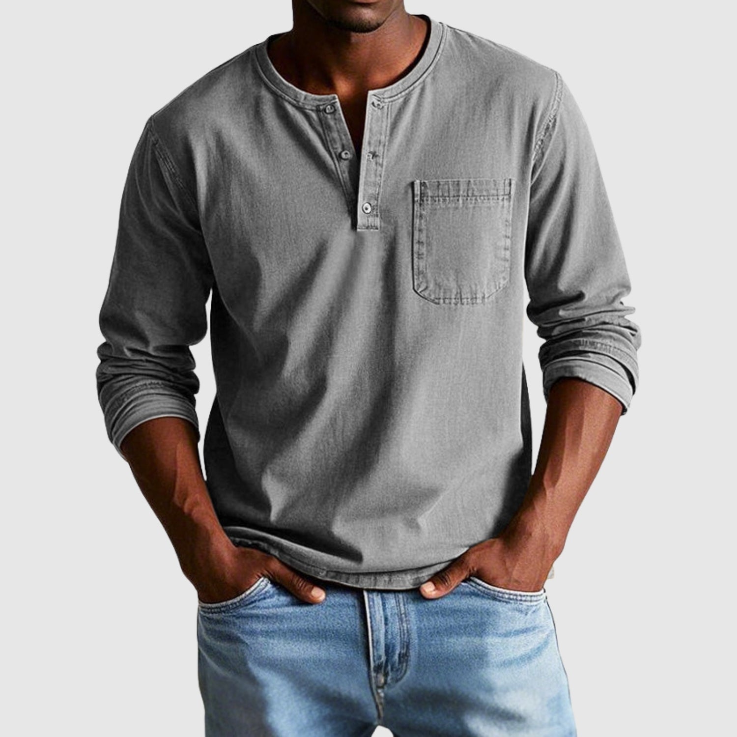 Ez a hosszú ujjú ing, amelyet a vintage stílus örök varázsa ihletett, a kényelem és a karakter tökéletes kombinációját kínálja. Az nyitott dekoltázs, a mellzseb és a laza szabás univerzális választássá teszi a hétköznapi megjelenésekhez, autentikus ízzel. Ideális azok számára, akik értékelik az egyedi identitású ruházatot.