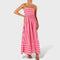 A Rózsa ruha lenyűgöz az ombre átmenetével, amely az esti égbolt színeire emlékeztet — aranysárgától őszibarackig, egészen a lágy lila árnyalatokig. A gyönyörű, lágy anyag mozgást és eleganciát kölcsönöz a ruhának, mintha táncolna a nyári esti szélben. Tökéletes választás romantikus estékhez, tengerparti éjszakákhoz vagy stílusos nyári eseményekhez.