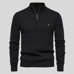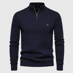 Ez a zipzáras pulóver ötvözi a klasszikus stílust és a modern funkcionalitást egyetlen ruhadarabban. Puha kötött anyaga tökéletesen alkalmazkodik a testhez, és kényelmet, valamint kifinomult megjelenést biztosít minden alkalomra. Ideális munkanapra és informális kimenetekre egyaránt, ez a sokoldalú dizájn férfias eleganciával gazdagítja a ruhatáradat.