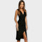 - Figyelemre méltó dekoltázs: A V-alakú dekoltázs diszkréten kiemeli a melleket és eleganciát ad.