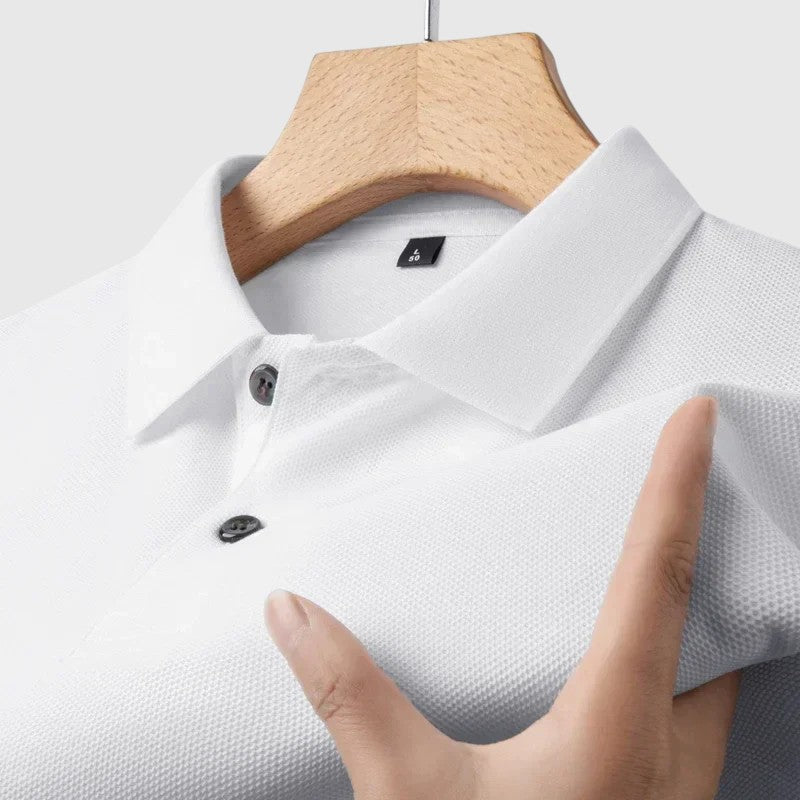 - Hagyományos póló design - Strukturált gallérral az elegáns megjelenésért.