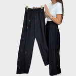A Verina nadrágok a kényelem és az elegancia tökéletes kombinációja, egy csipetnyi csillogással. Széles szárú és magas derekú, úgy tervezték őket, hogy kiemeljék a sziluettet, és folyékony illeszkedést biztosítsanak, amely mozgást és kifinomultságot kölcsönöz minden lépésnél.